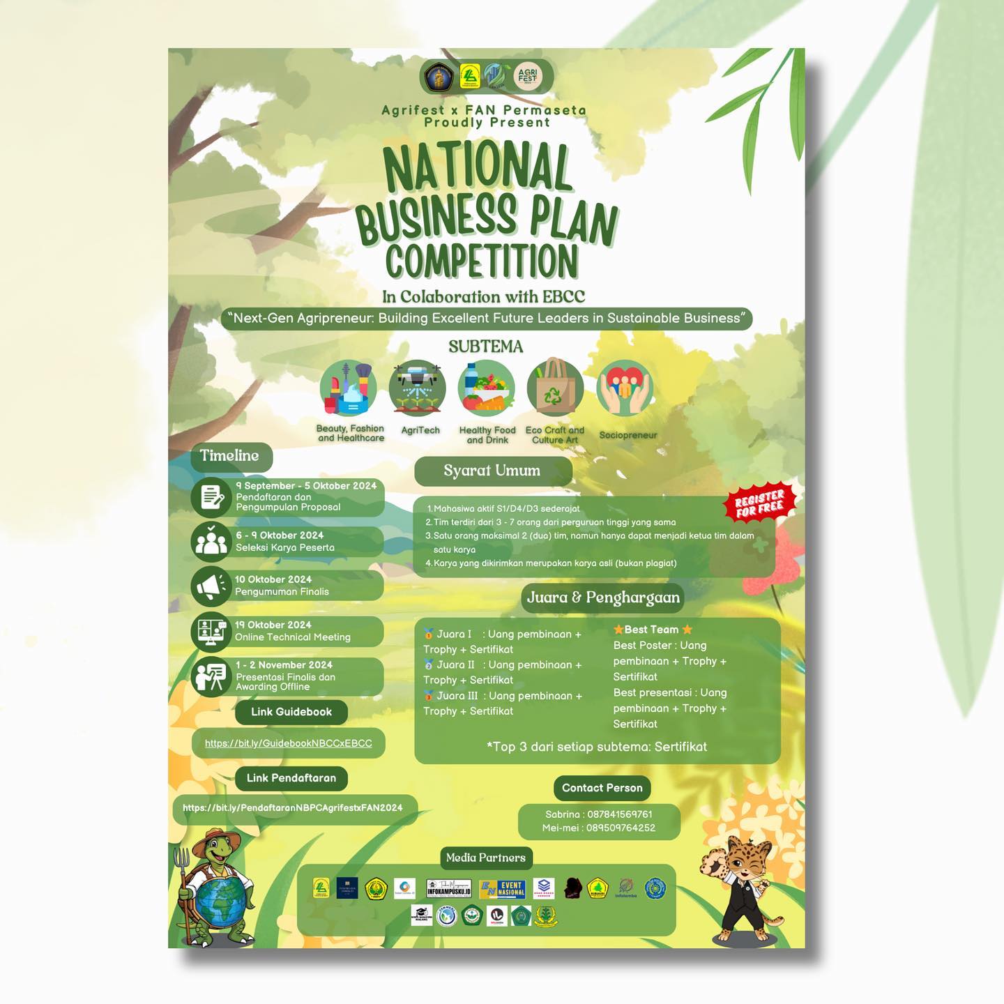 Departemen Sosial Ekonomi Pertanian Universitas Brawijaya X Festival Agribusiness National 2024 mempersembahkan National Business Plan Competition X EBCC ✨