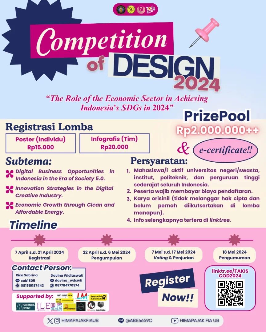 Yuk, daftarkan dirimu segera dan jangan lewatkan kesempatan untuk bergabung dalam Competition of Design 2024!