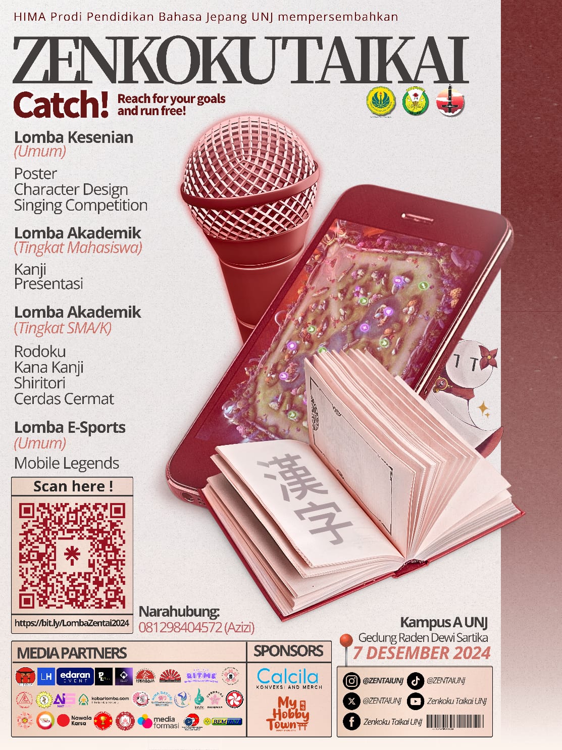 Seperti yang kalian tahu, Zenkoku Taikai menyelenggarakan 3 jenis lomba, yakni Kesenian, Akademik, dan E-Sports. Kalian yang berminat dan merasa punya keahlian di salah satu dari 3 jenis lomba diatas, ini adalah kesempatan emas yang bisa kalian ambil lho! (β β―β α΄β β―β )