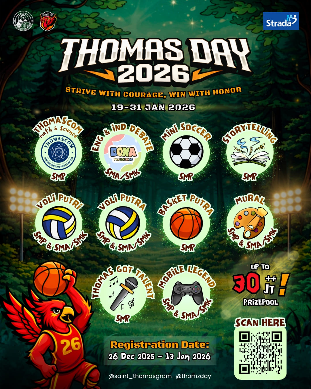 Dalam rangka memperingati ulang tahun ke-62 ini, SMA Strada St. Thomas Aquino mengadakan kegiatan 🍁𝗧𝗛𝗢𝗠𝗔𝗦 𝗗𝗔𝗬 𝟮𝟬𝟮𝟲🍁 yang dirancang sebagai ajang kompetisi di bidang olahraga, seni, dan akademik dengan tema